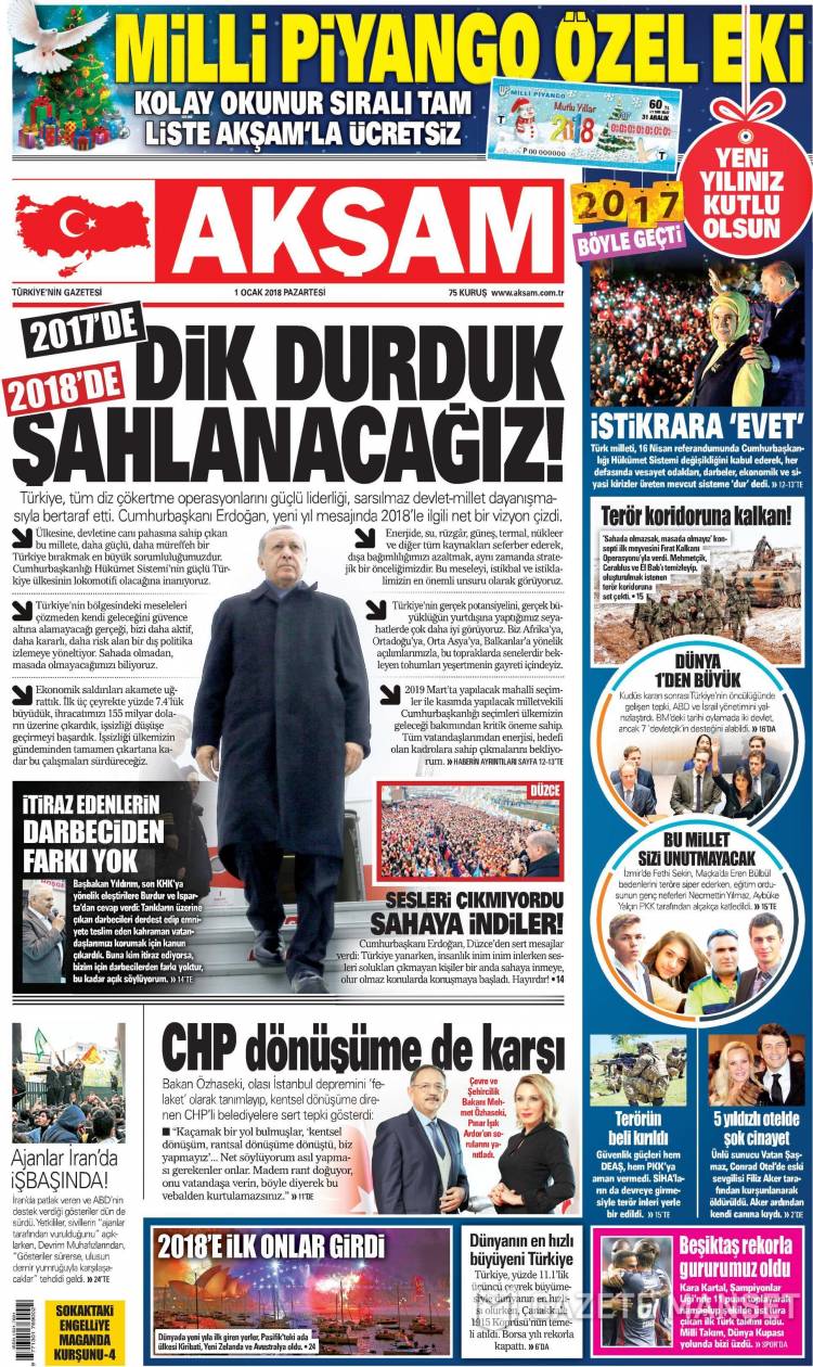 * Günün Ulusal Gazete Manşetleri – 01 01 2018Ulusal Gazetelerin 1. sayfaları Haber Merkezi Yayınlanma: 01.01.2018 - 11:50 Son güncellenme: 29.01.2025 - 13:39 Akşam