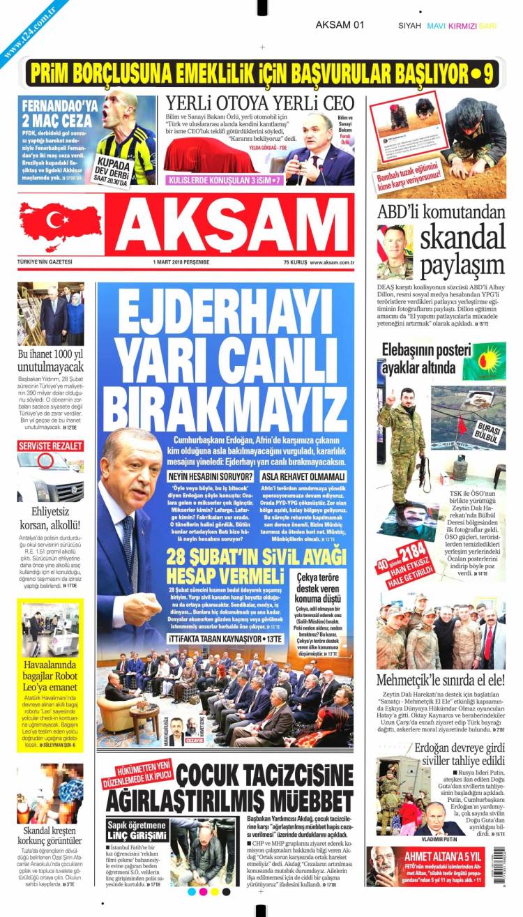* Günün Ulusal Gazete Manşetleri – 01 03 2018Ulusal Gazetelerin 1. sayfaları Haber Merkezi Yayınlanma: 01.03.2018 - 11:50 Son güncellenme: 29.01.2025 - 11:37 Akşam