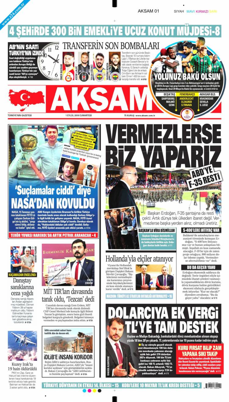 Günün Ulusal Gazete Manşetleri – 01 09 2018Ulusal Gazetelerin 1. sayfaları Haber Merkezi Yayınlanma: 01.09.2018 - 11:50 Son güncellenme: 29.01.2025 - 07:32 Akşam