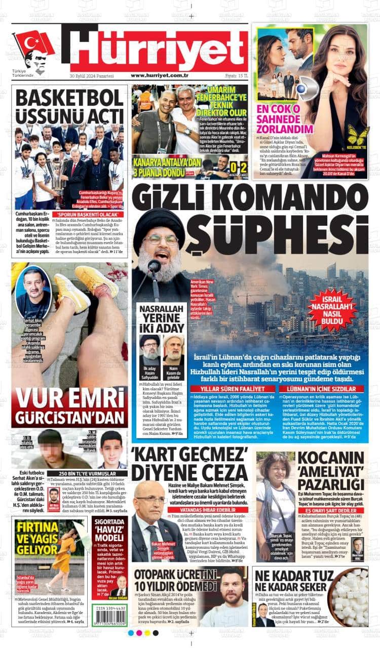 * Günün Ulusal Gazete Manşetleri – 01 10 2024Ulusal Gazetelerin 1. sayfaları Haber Merkezi Yayınlanma: 01.10.2024 - 11:50 Son güncellenme: 27.01.2025 - 23:53 Hürriyet