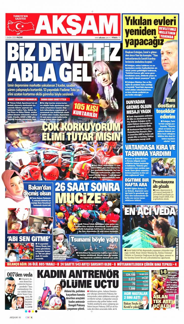 Günün Ulusal Gazete Manşetleri – 01 11 2020Ulusal Gazetelerin 1. sayfaları Haber Merkezi Yayınlanma: 01.11.2020 - 11:50 Son güncellenme: 28.01.2025 - 19:43 Akşam