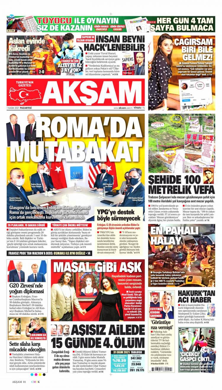 Günün Ulusal Gazete Manşetleri – 01 11 2021Ulusal Gazetelerin 1. sayfaları Haber Merkezi Yayınlanma: 01.11.2021 - 11:50 Son güncellenme: 28.01.2025 - 14:35 Akşam