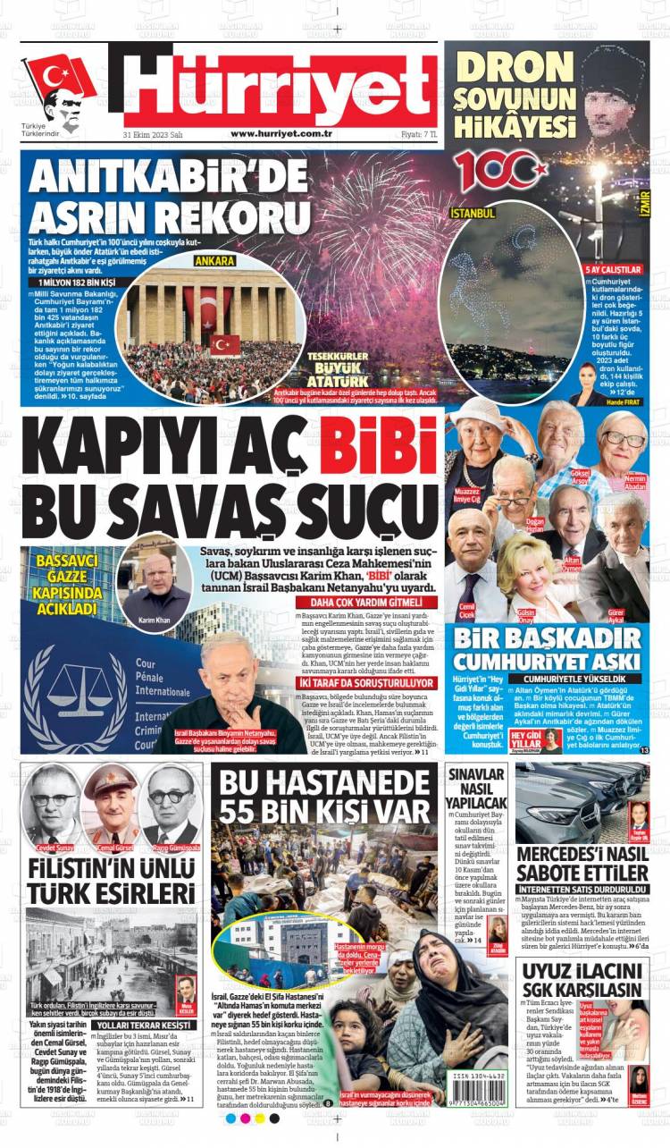 * Günün Ulusal Gazete Manşetleri – 01 11 2023Ulusal Gazetelerin 1. sayfaları Haber Merkezi Yayınlanma: 01.11.2023 - 11:50 Son güncellenme: 28.01.2025 - 04:39 Hürriyet