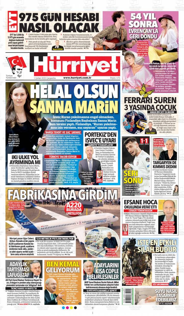 Günün Ulusal Gazete Manşetleri – 02 02 2023Ulusal Gazetelerin 1. sayfaları Haber Merkezi Yayınlanma: 02.02.2023 - 11:50 Son güncellenme: 28.01.2025 - 08:20 Hürriyet