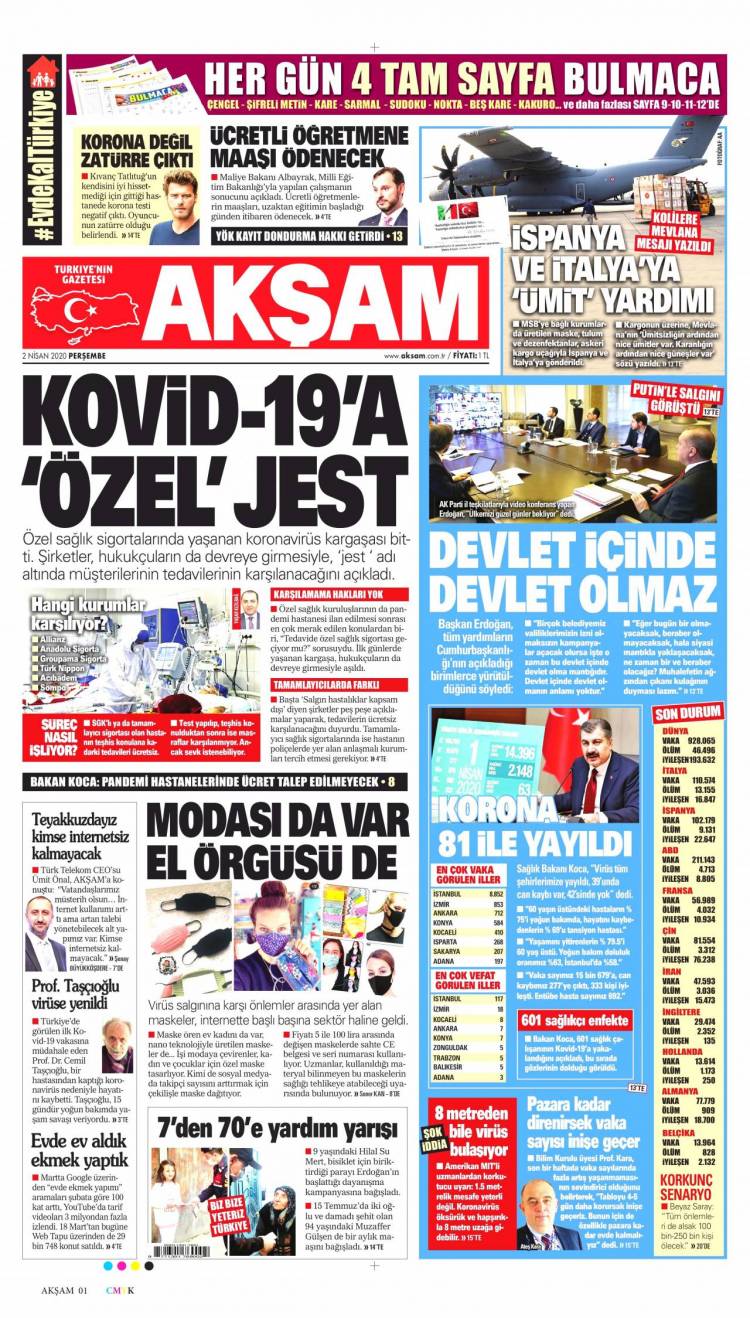 Günün Ulusal Gazete Manşetleri – 02 04 2020Ulusal Gazetelerin 1. sayfaları Haber Merkezi Yayınlanma: 02.04.2020 - 11:50 Son güncellenme: 28.01.2025 - 22:58 Akşam