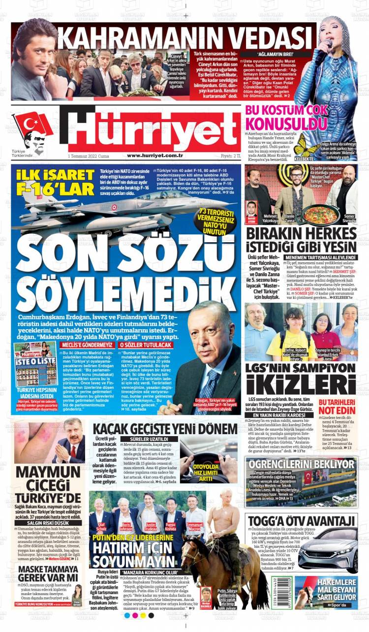 Günün Ulusal Gazete Manşetleri – 02 07 2022Ulusal Gazetelerin 1. sayfaları Haber Merkezi Yayınlanma: 02.07.2022 - 11:50 Son güncellenme: 28.01.2025 - 11:09 Hürriyet