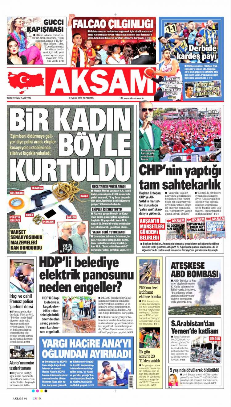 * Günün Ulusal Gazete Manşetleri – 02 09 2019Ulusal Gazetelerin 1. sayfaları Haber Merkezi Yayınlanma: 02.09.2019 - 11:50 Son güncellenme: 29.01.2025 - 01:32 Akşam