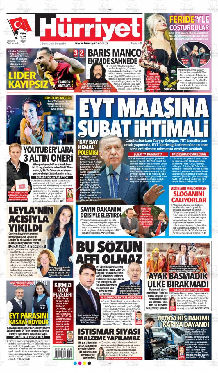 Günün Ulusal Gazete Manşetleri – 03 02 2023Ulusal Gazetelerin 1. sayfaları Haber Merkezi Yayınlanma: 03.02.2023 - 11:50 Son güncellenme: 28.01.2025 - 08:19 Hürriyet