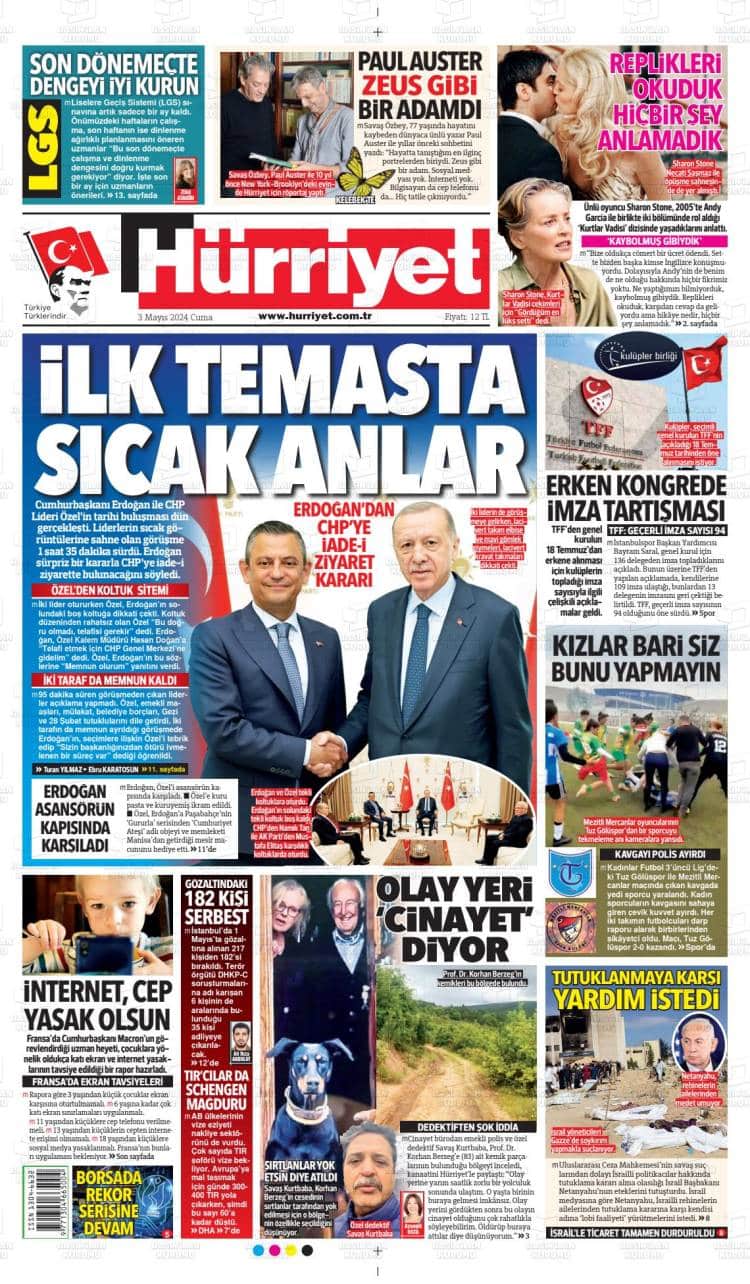 * Günün Ulusal Gazete Manşetleri – 03 05 2024Ulusal Gazetelerin 1. sayfaları Haber Merkezi Yayınlanma: 03.05.2024 - 11:50 Son güncellenme: 28.01.2025 - 02:18 Hürriyet
