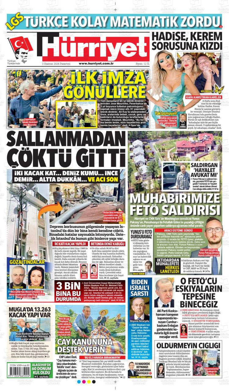 Günün Ulusal Gazete Manşetleri – 03 06 2024Ulusal Gazetelerin 1. sayfaları Haber Merkezi Yayınlanma: 03.06.2024 - 11:50 Son güncellenme: 28.01.2025 - 01:53 Hürriyet