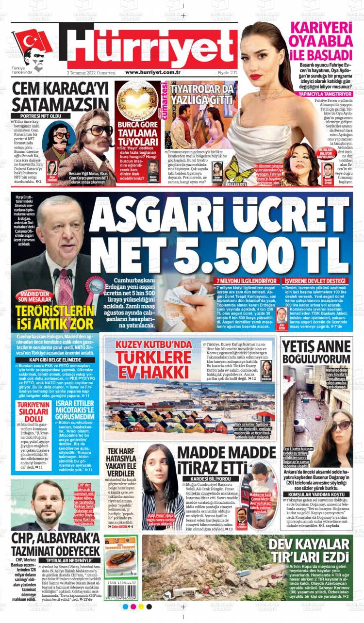 Günün Ulusal Gazete Manşetleri – 03 07 2022Ulusal Gazetelerin 1. sayfaları Haber Merkezi Yayınlanma: 03.07.2022 - 11:50 Son güncellenme: 28.01.2025 - 11:08 Hürriyet