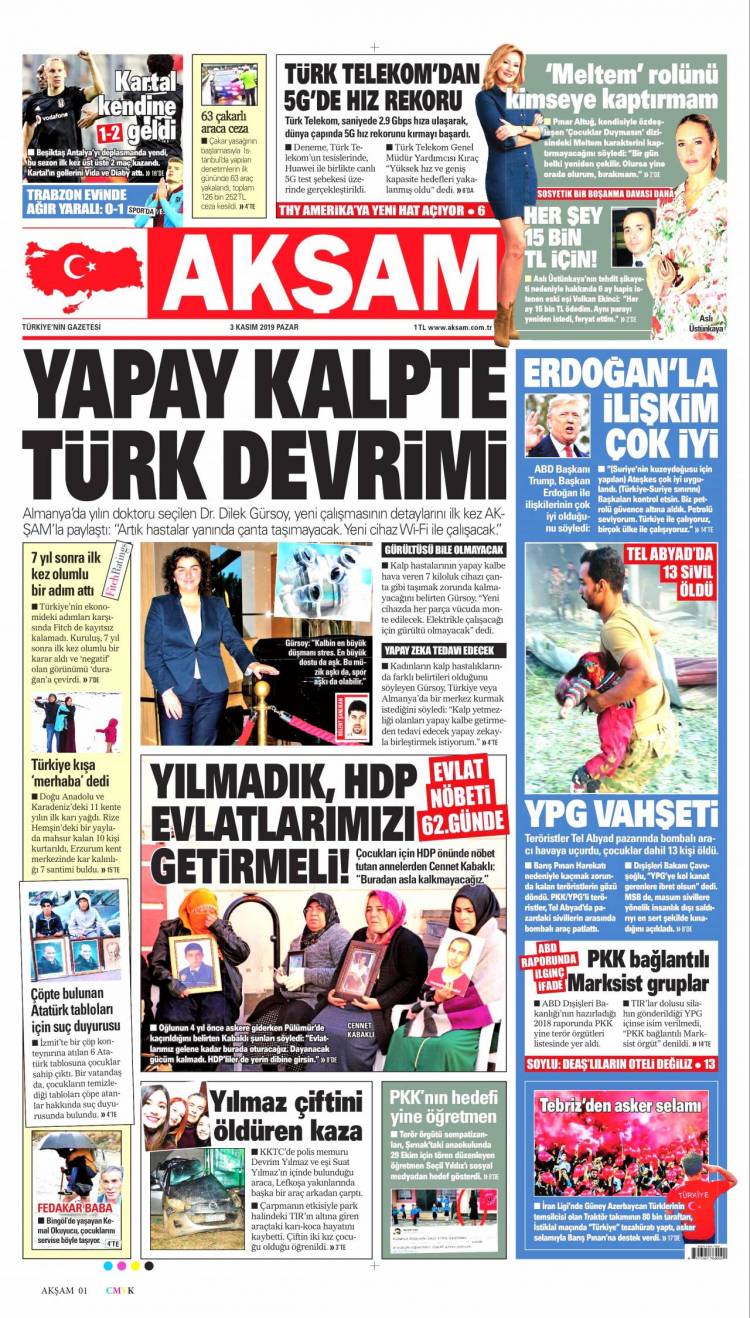 Günün Ulusal Gazete Manşetleri – 03 11 2019Ulusal Gazetelerin 1. sayfaları Haber Merkezi Yayınlanma: 03.11.2019 - 11:50 Son güncellenme: 29.01.2025 - 00:40 Akşam