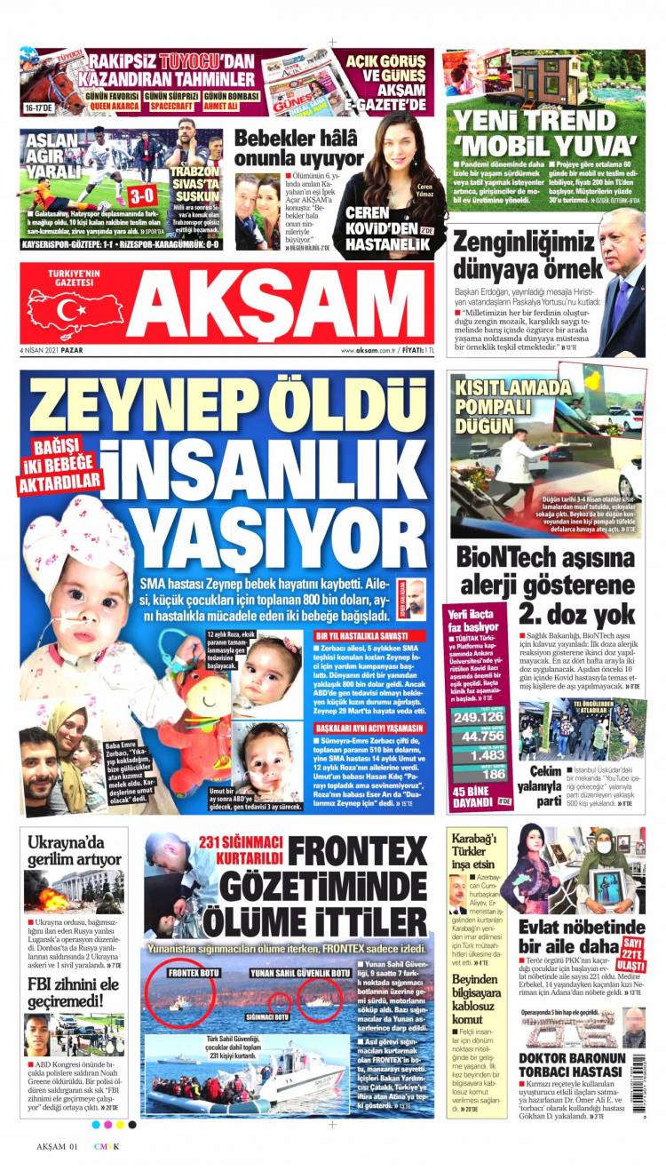 * Günün Ulusal Gazete Manşetleri – 04 04 2021Ulusal Gazetelerin 1. sayfaları Haber Merkezi Yayınlanma: 04.04.2021 - 11:50 Son güncellenme: 28.01.2025 - 17:32 Akşam