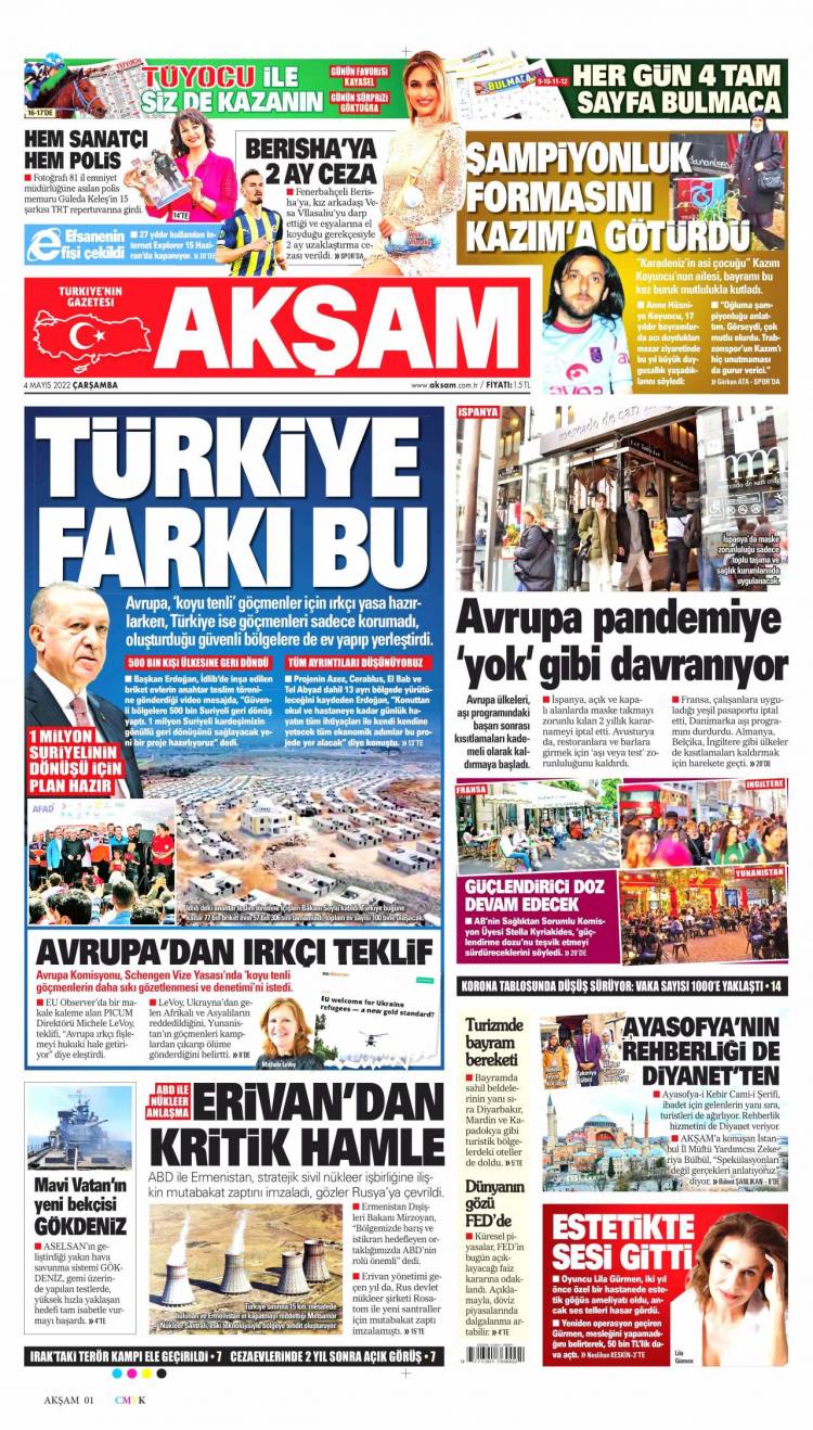 Günün Ulusal Gazete Manşetleri – 04 05 2022Ulusal Gazetelerin 1. sayfaları Haber Merkezi Yayınlanma: 04.05.2022 - 11:50 Son güncellenme: 28.01.2025 - 11:59 Akşam