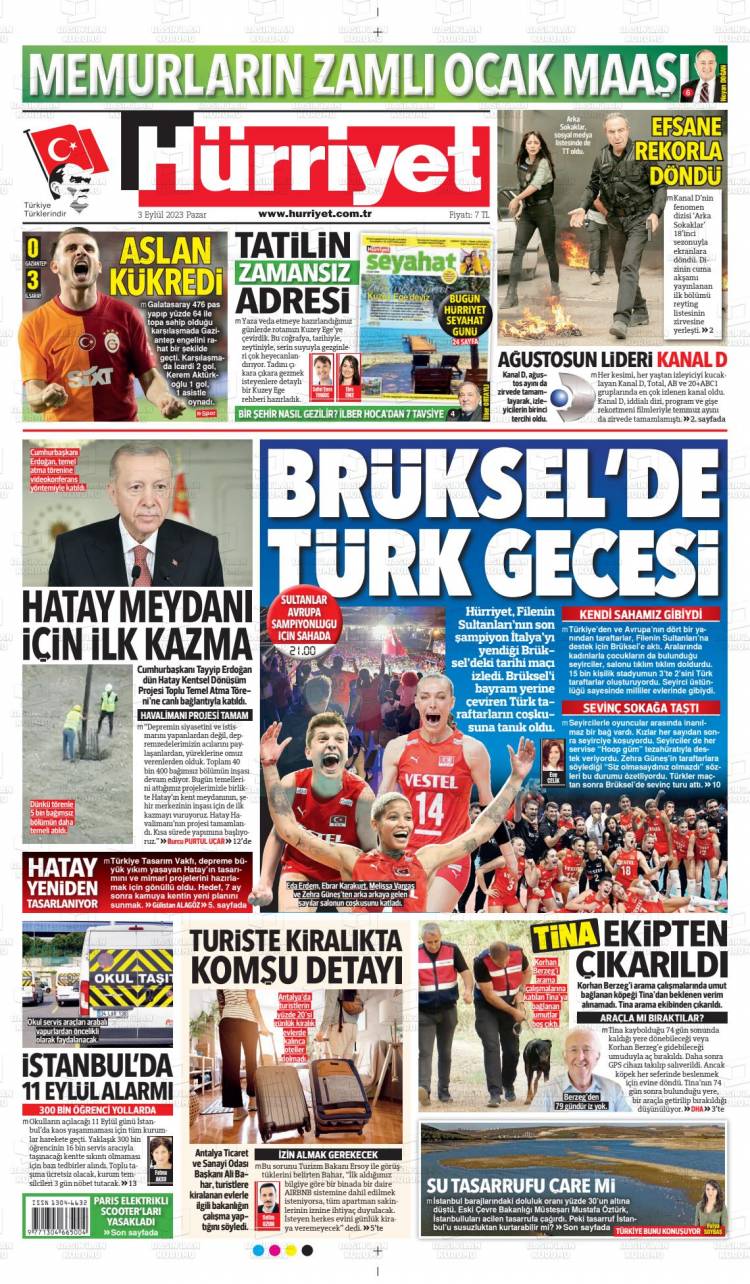 * Günün Ulusal Gazete Manşetleri – 04 09 2023Ulusal Gazetelerin 1. sayfaları Haber Merkezi Yayınlanma: 04.09.2023 - 11:50 Son güncellenme: 28.01.2025 - 05:32 Hürriyet