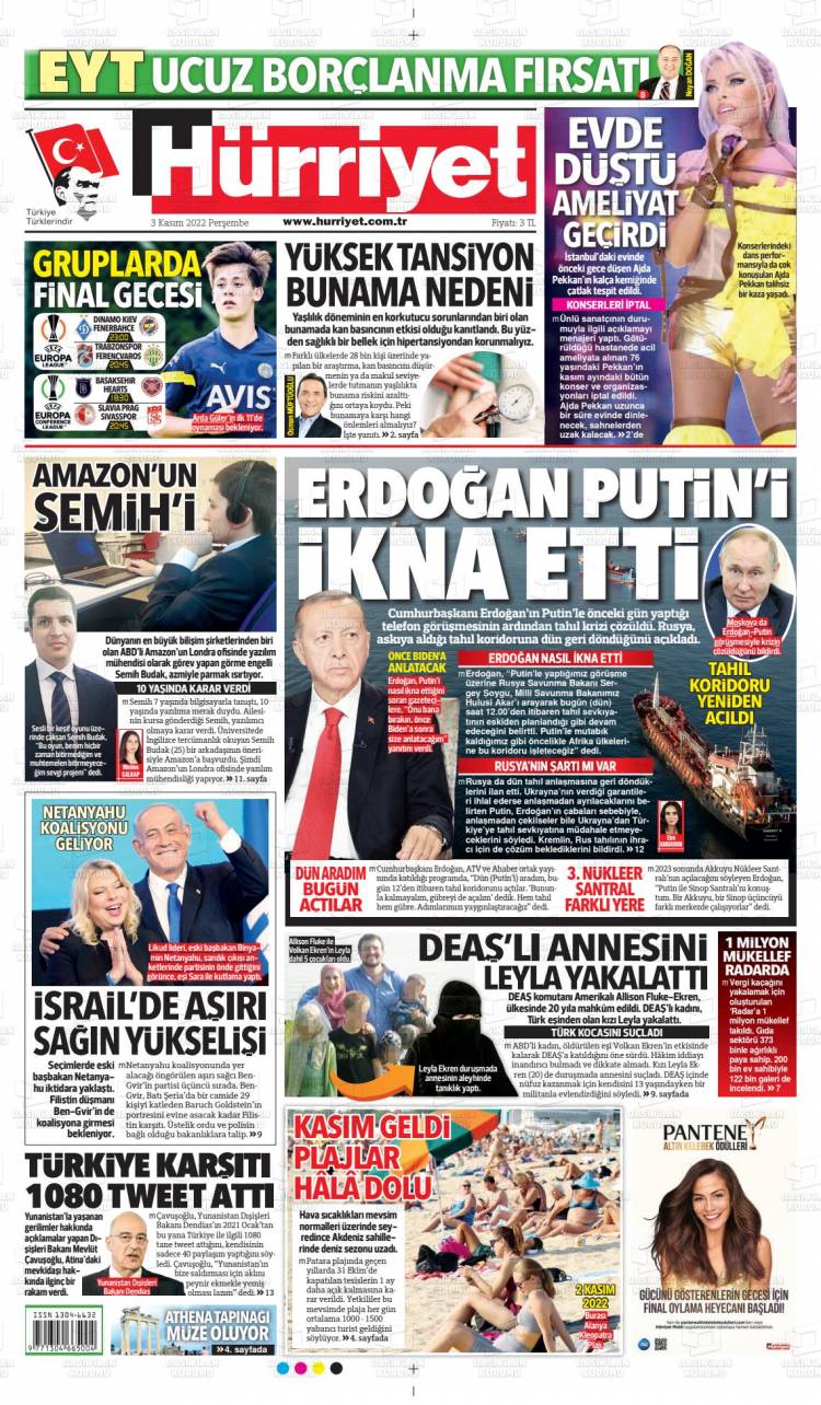 * Günün Ulusal Gazete Manşetleri – 04 11 2022Ulusal Gazetelerin 1. sayfaları Haber Merkezi Yayınlanma: 04.11.2022 - 11:50 Son güncellenme: 28.01.2025 - 09:27 Hürriyet