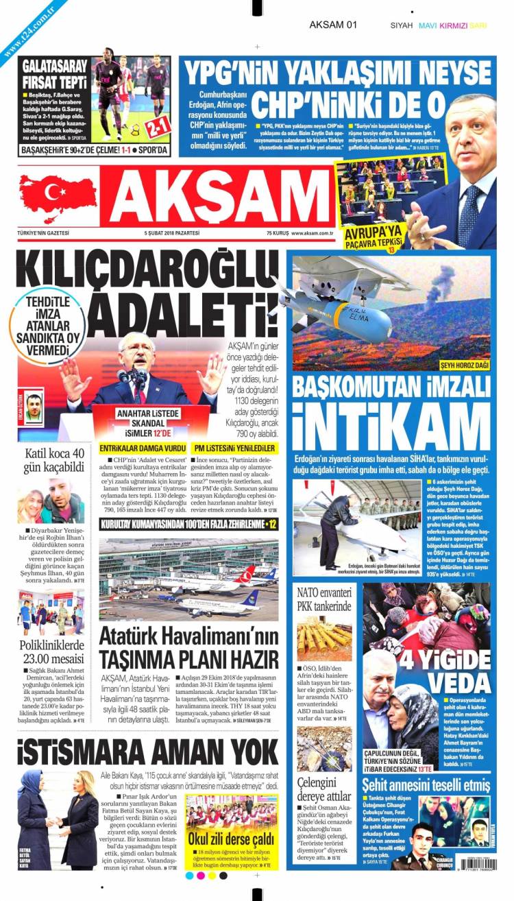 Günün Ulusal Gazete Manşetleri – 05 02 2018Ulusal Gazetelerin 1. sayfaları Haber Merkezi Yayınlanma: 05.02.2018 - 11:50 Son güncellenme: 29.01.2025 - 12:30 Akşam