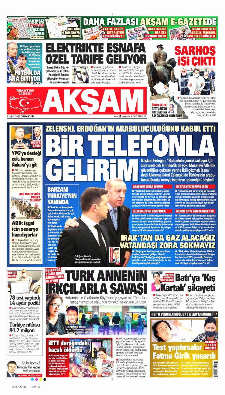 Günün Ulusal Gazete Manşetleri – 05 02 2022Ulusal Gazetelerin 1. sayfaları Haber Merkezi Yayınlanma: 05.02.2022 - 11:50 Son güncellenme: 28.01.2025 - 13:14 Akşam