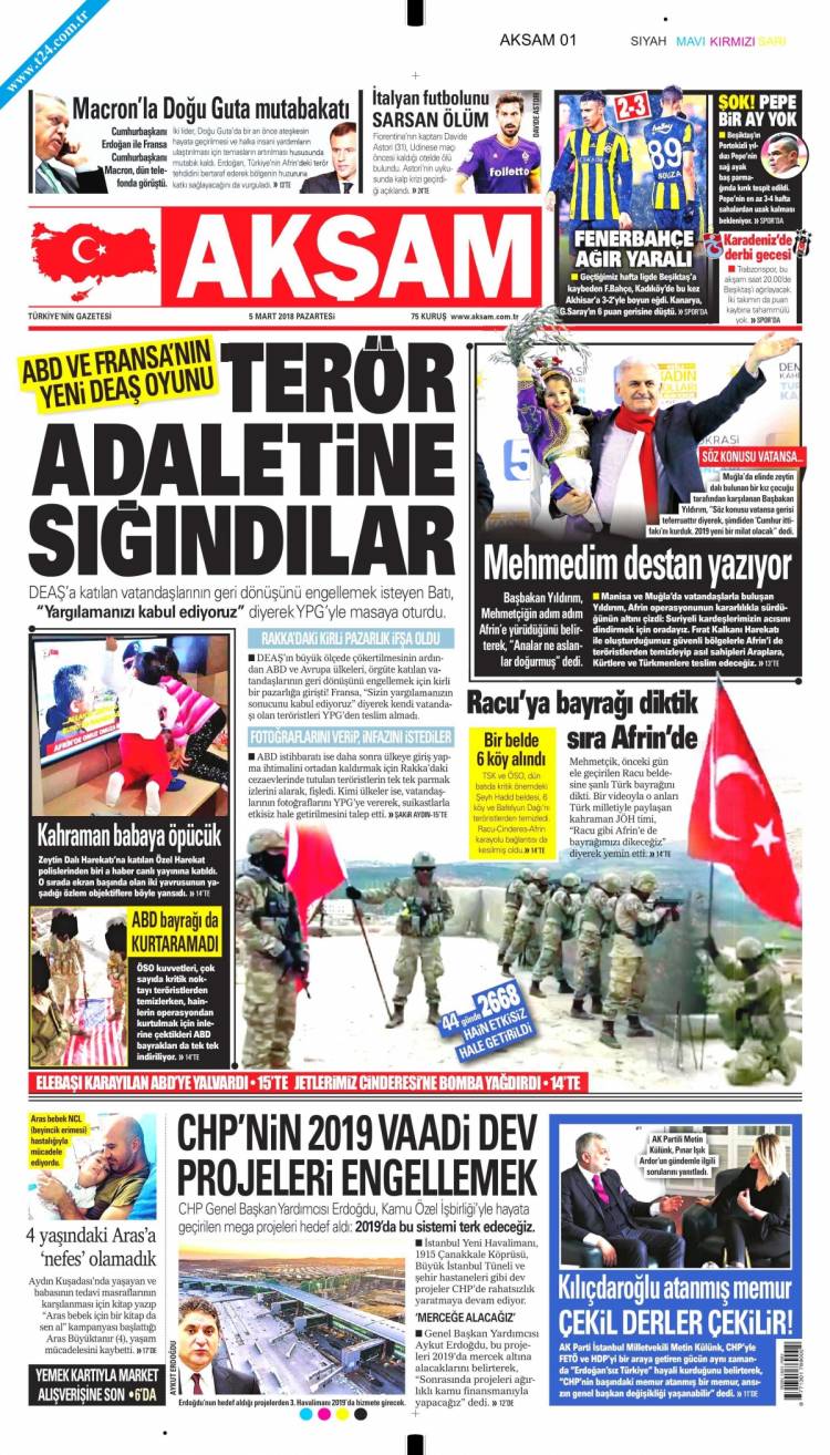 Günün Ulusal Gazete Manşetleri – 05 03 2018Ulusal Gazetelerin 1. sayfaları Haber Merkezi Yayınlanma: 05.03.2018 - 11:50 Son güncellenme: 29.01.2025 - 11:29 Akşam