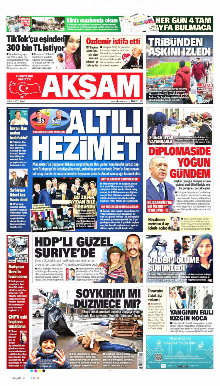 Günün Ulusal Gazete Manşetleri – 05 04 2022Ulusal Gazetelerin 1. sayfaları Haber Merkezi Yayınlanma: 05.04.2022 - 11:50 Son güncellenme: 28.01.2025 - 12:24 Akşam