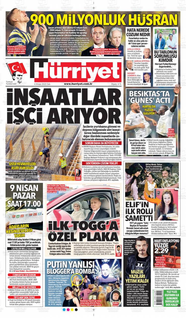 * Günün Ulusal Gazete Manşetleri – 05 04 2023Ulusal Gazetelerin 1. sayfaları Haber Merkezi Yayınlanma: 05.04.2023 - 11:50 Son güncellenme: 28.01.2025 - 07:31 Hürriyet
