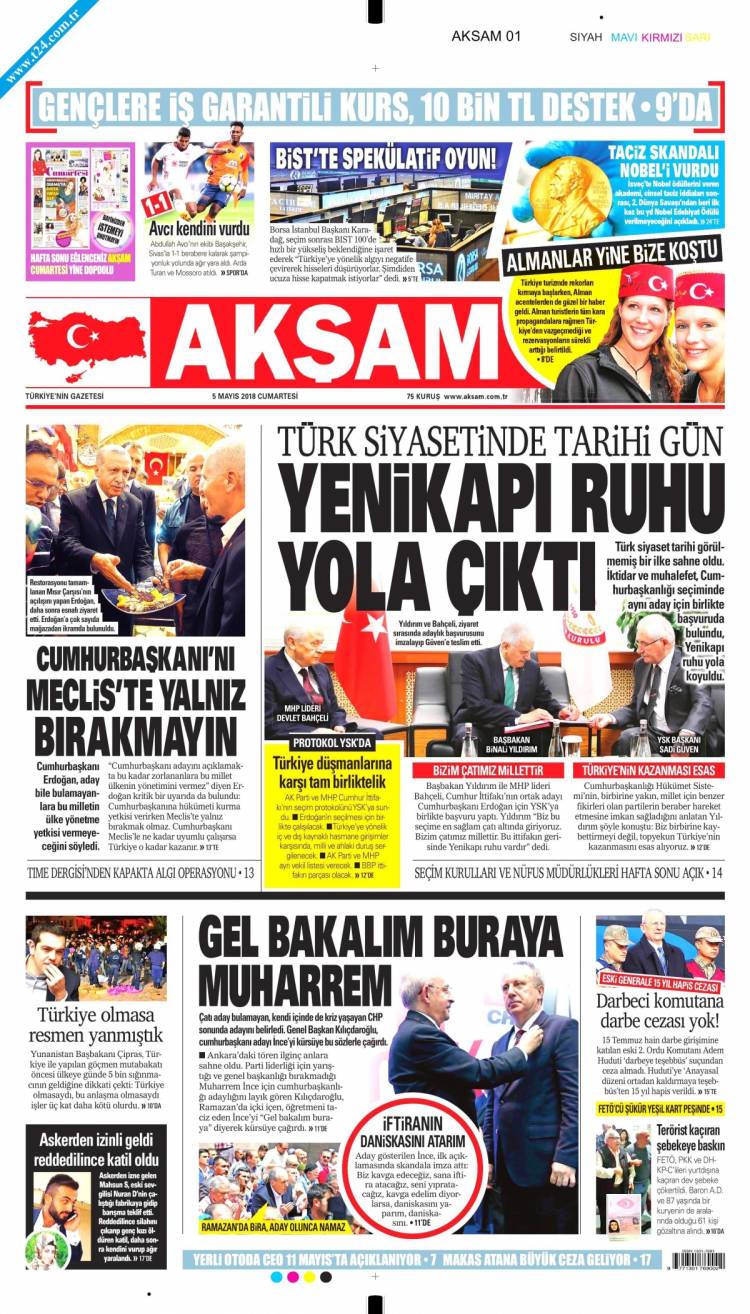* Günün Ulusal Gazete Manşetleri – 05 05 2018Ulusal Gazetelerin 1. sayfaları Haber Merkezi Yayınlanma: 05.05.2018 - 11:50 Son güncellenme: 29.01.2025 - 10:00 Akşam