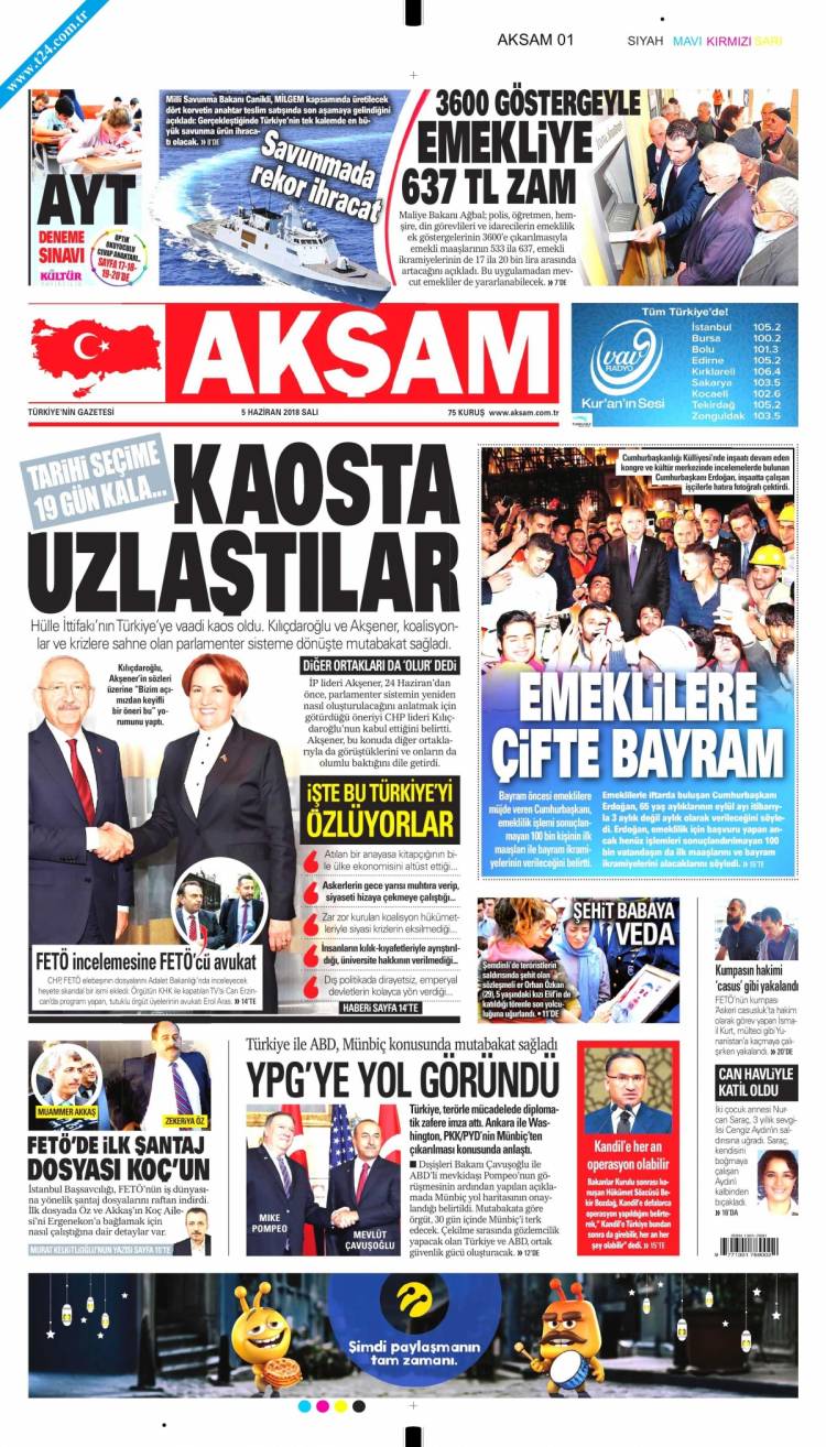 Günün Ulusal Gazete Manşetleri – 05 06 2018Ulusal Gazetelerin 1. sayfaları Haber Merkezi Yayınlanma: 05.06.2018 - 11:50 Son güncellenme: 29.01.2025 - 09:22 Akşam