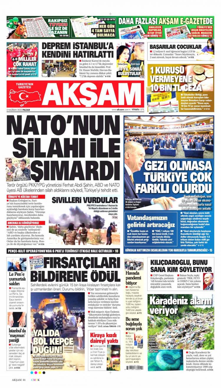 * Günün Ulusal Gazete Manşetleri – 05 06 2022Ulusal Gazetelerin 1. sayfaları Haber Merkezi Yayınlanma: 05.06.2022 - 11:50 Son güncellenme: 28.01.2025 - 11:31 Akşam