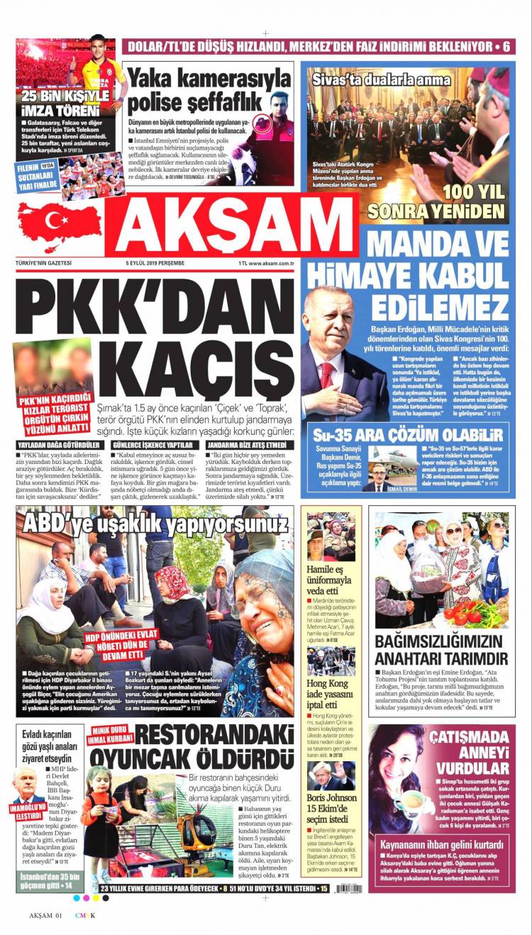 * Günün Ulusal Gazete Manşetleri – 05 09 2019Ulusal Gazetelerin 1. sayfaları Haber Merkezi Yayınlanma: 05.09.2019 - 11:50 Son güncellenme: 29.01.2025 - 01:29 Akşam