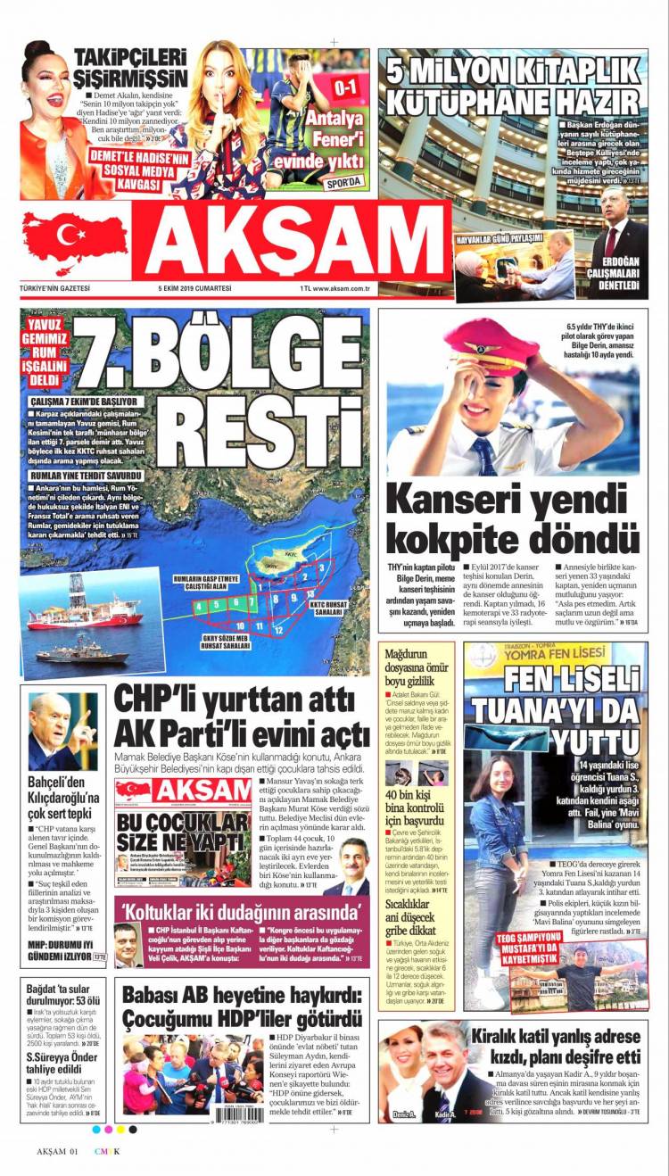 * Günün Ulusal Gazete Manşetleri – 05 10 2019Ulusal Gazetelerin 1. sayfaları Haber Merkezi Yayınlanma: 05.10.2019 - 11:50 Son güncellenme: 29.01.2025 - 01:05 Akşam