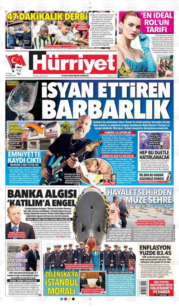 Günün Ulusal Gazete Manşetleri – 05 10 2022Ulusal Gazetelerin 1. sayfaları Haber Merkezi Yayınlanma: 05.10.2022 - 11:50 Son güncellenme: 28.01.2025 - 09:51 Hürriyet