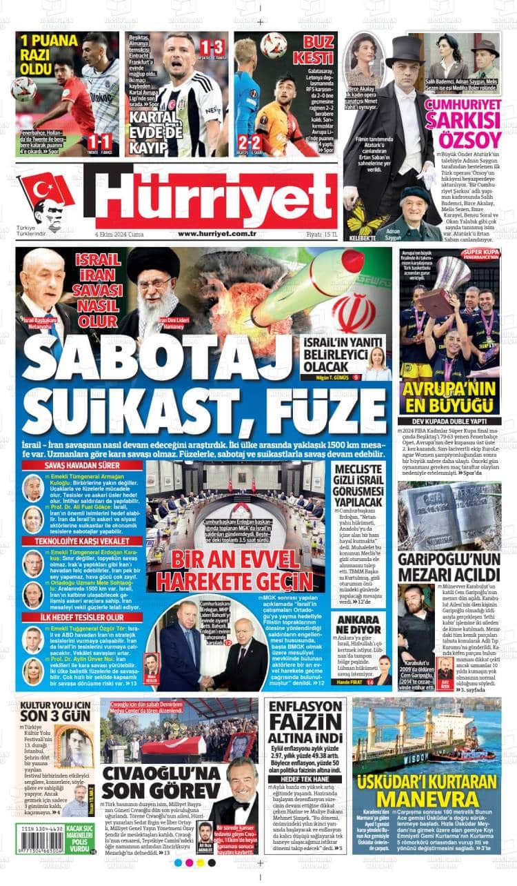* Günün Ulusal Gazete Manşetleri – 05 10 2024Ulusal Gazetelerin 1. sayfaları Haber Merkezi Yayınlanma: 05.10.2024 - 11:50 Son güncellenme: 27.01.2025 - 23:49 Hürriyet