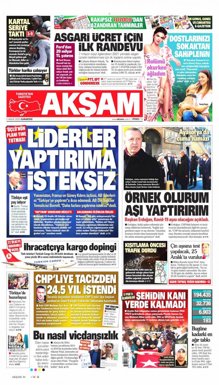 Günün Ulusal Gazete Manşetleri – 05 12 2020Ulusal Gazetelerin 1. sayfaları Haber Merkezi Yayınlanma: 05.12.2020 - 11:50 Son güncellenme: 28.01.2025 - 19:14 Akşam