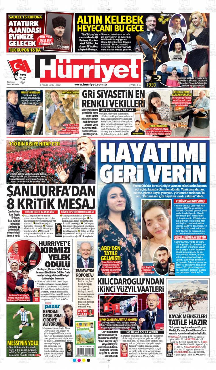 * Günün Ulusal Gazete Manşetleri – 05 12 2022Ulusal Gazetelerin 1. sayfaları Haber Merkezi Yayınlanma: 05.12.2022 - 11:50 Son güncellenme: 28.01.2025 - 09:03 Hürriyet