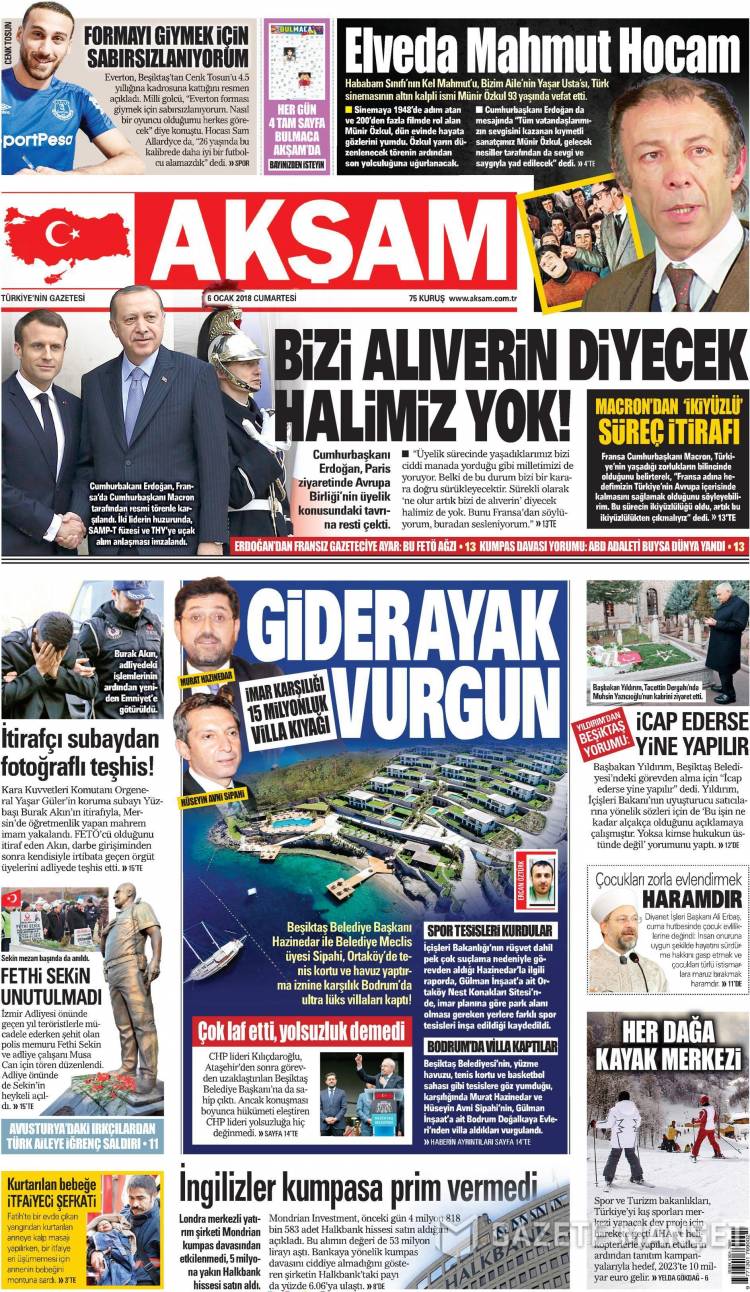 * Günün Ulusal Gazete Manşetleri – 06 01 2018Ulusal Gazetelerin 1. sayfaları Haber Merkezi Yayınlanma: 06.01.2018 - 11:50 Son güncellenme: 29.01.2025 - 13:30 Akşam