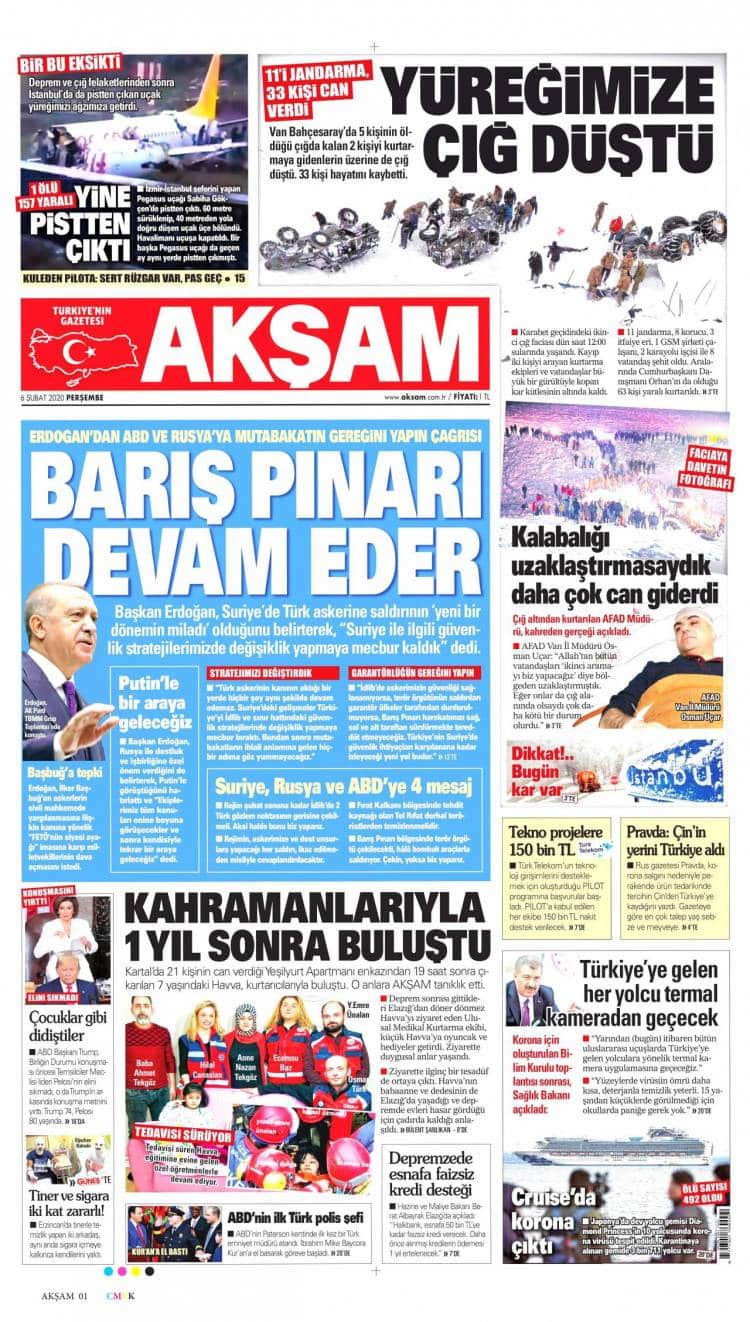* Günün Ulusal Gazete Manşetleri – 06 02 2020Ulusal Gazetelerin 1. sayfaları Haber Merkezi Yayınlanma: 06.02.2020 - 11:50 Son güncellenme: 28.01.2025 - 23:43 Akşam