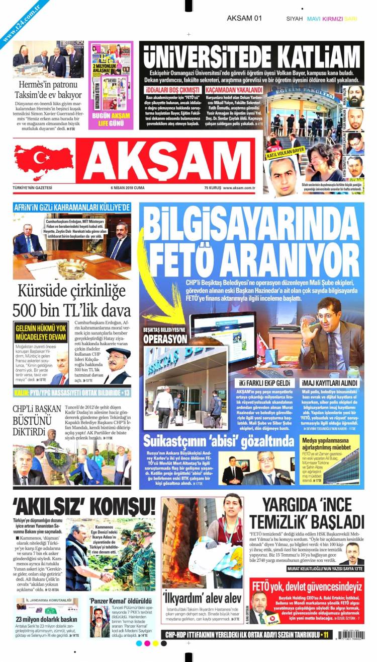 * Günün Ulusal Gazete Manşetleri – 06 04 2018Ulusal Gazetelerin 1. sayfaları Haber Merkezi Yayınlanma: 06.04.2018 - 11:50 Son güncellenme: 29.01.2025 - 10:37 Akşam