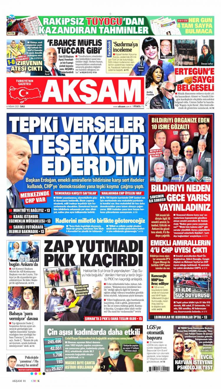 * Günün Ulusal Gazete Manşetleri – 06 04 2021Ulusal Gazetelerin 1. sayfaları Haber Merkezi Yayınlanma: 06.04.2021 - 11:50 Son güncellenme: 28.01.2025 - 17:30 Akşam