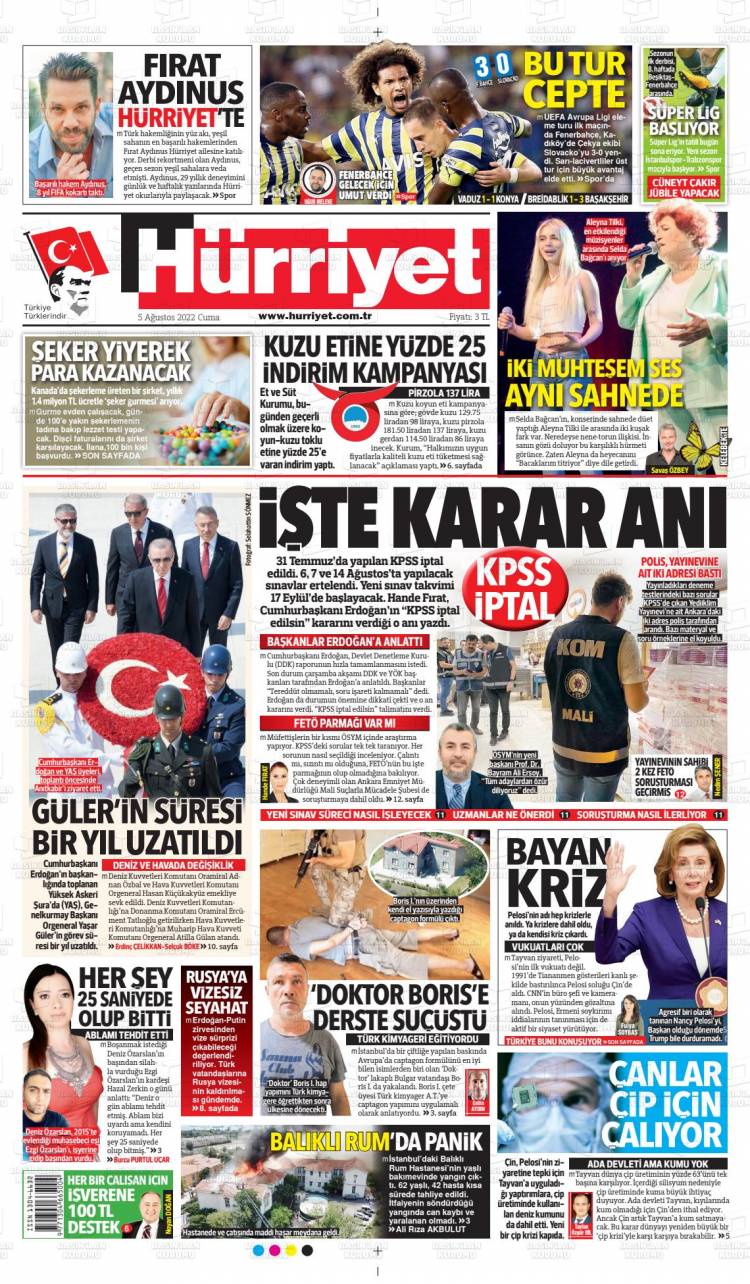 * Günün Ulusal Gazete Manşetleri – 06 08 2022Ulusal Gazetelerin 1. sayfaları Haber Merkezi Yayınlanma: 06.08.2022 - 11:50 Son güncellenme: 28.01.2025 - 10:41 Hürriyet
