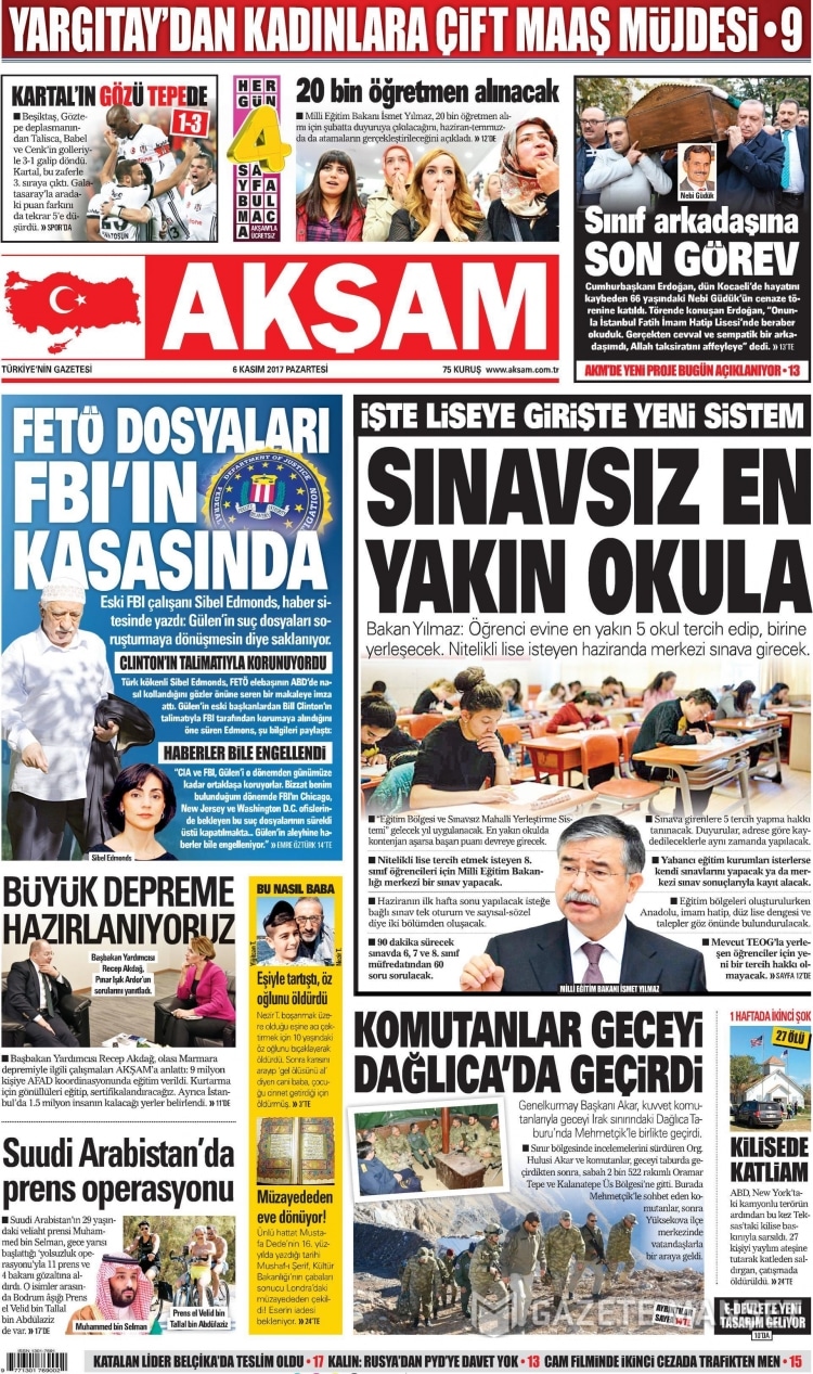 Günün Ulusal Gazete Manşetleri – 06 11 2017Ulusal Gazetelerin 1. sayfaları Haber Merkezi Yayınlanma: 06.11.2017 - 11:50 Son güncellenme: 26.01.2025 - 00:46 Akşam