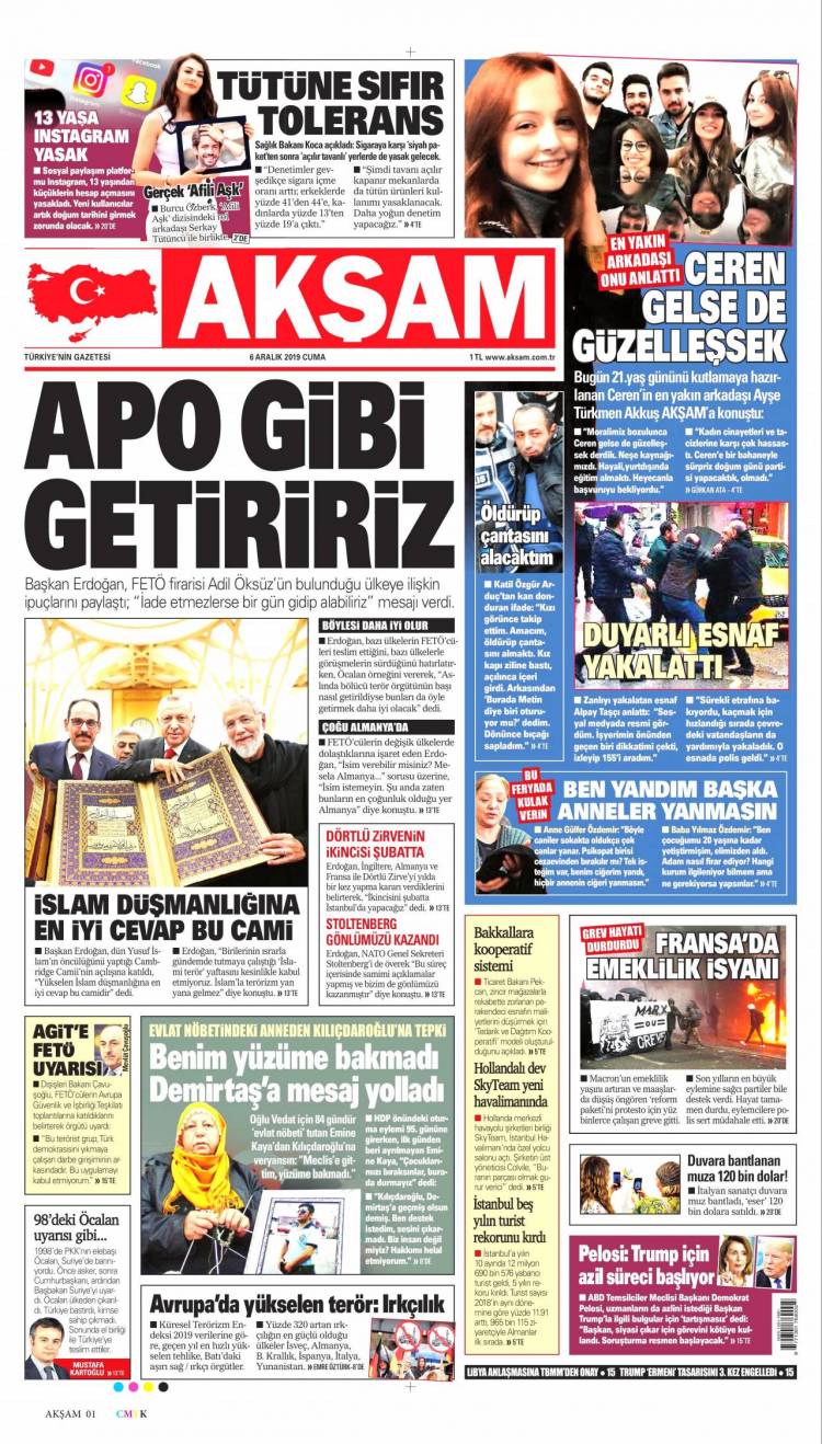 Günün Ulusal Gazete Manşetleri – 06 12 2019Ulusal Gazetelerin 1. sayfaları Haber Merkezi Yayınlanma: 06.12.2019 - 11:50 Son güncellenme: 29.01.2025 - 00:12 Akşam