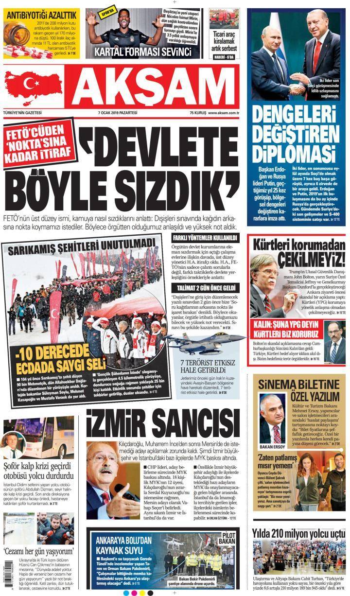 * Günün Ulusal Gazete Manşetleri – 07 01 2019Ulusal Gazetelerin 1. sayfaları Haber Merkezi Yayınlanma: 07.01.2019 - 11:50 Son güncellenme: 29.01.2025 - 05:07 Akşam