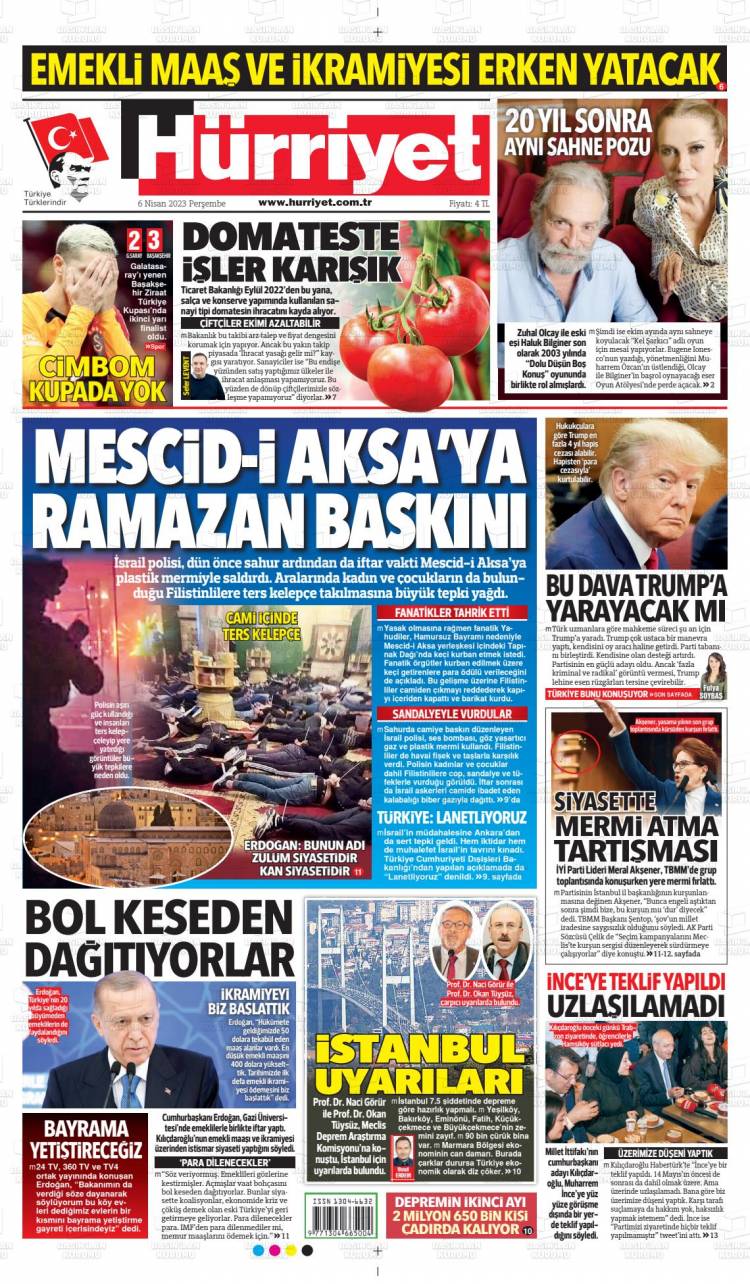 * Günün Ulusal Gazete Manşetleri – 07 04 2023Ulusal Gazetelerin 1. sayfaları Haber Merkezi Yayınlanma: 07.04.2023 - 11:50 Son güncellenme: 28.01.2025 - 07:30 Hürriyet