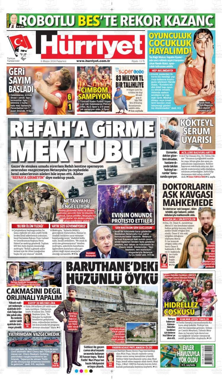 * Günün Ulusal Gazete Manşetleri – 07 05 2024Ulusal Gazetelerin 1. sayfaları Haber Merkezi Yayınlanma: 07.05.2024 - 11:50 Son güncellenme: 28.01.2025 - 02:15 Hürriyet