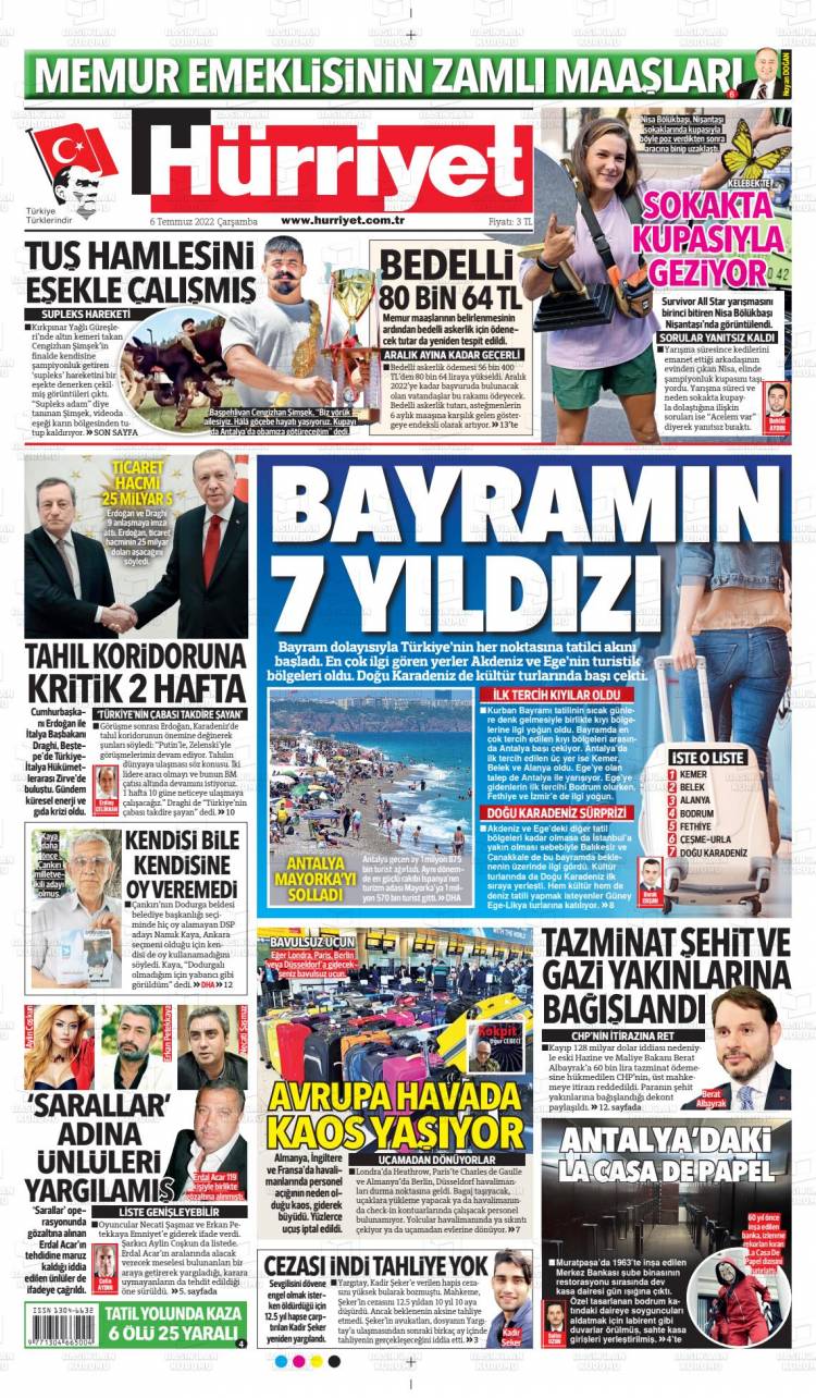 * Günün Ulusal Gazete Manşetleri – 07 07 2022Ulusal Gazetelerin 1. sayfaları Haber Merkezi Yayınlanma: 07.07.2022 - 11:50 Son güncellenme: 28.01.2025 - 11:05 Hürriyet