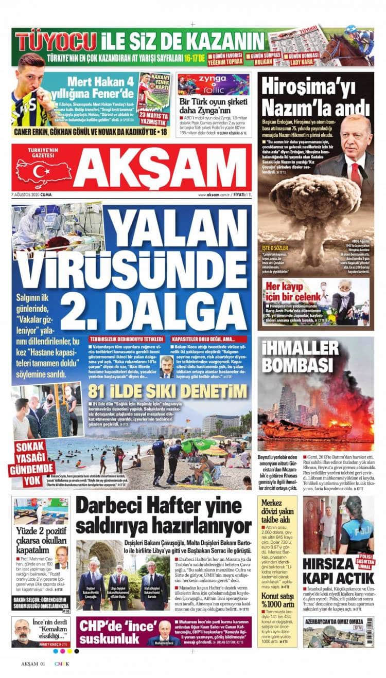 * Günün Ulusal Gazete Manşetleri – 07 08 2020Ulusal Gazetelerin 1. sayfaları Haber Merkezi Yayınlanma: 07.08.2020 - 11:50 Son güncellenme: 28.01.2025 - 20:59 Akşam