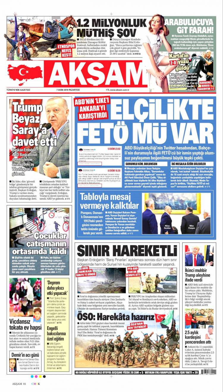 * Günün Ulusal Gazete Manşetleri – 07 10 2019Ulusal Gazetelerin 1. sayfaları Haber Merkezi Yayınlanma: 07.10.2019 - 11:50 Son güncellenme: 29.01.2025 - 01:03 Akşam