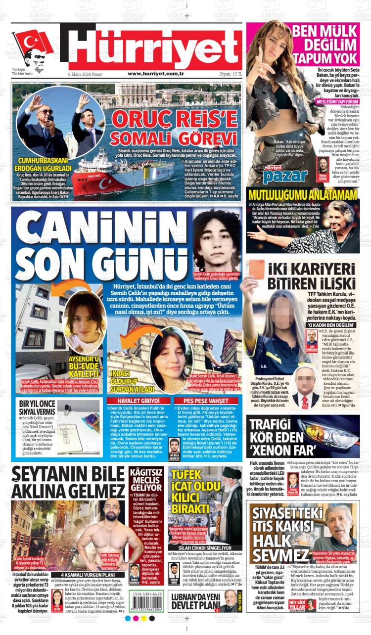 * Günün Ulusal Gazete Manşetleri – 07 10 2024Ulusal Gazetelerin 1. sayfaları Haber Merkezi Yayınlanma: 07.10.2024 - 11:50 Son güncellenme: 27.01.2025 - 23:48 Hürriyet