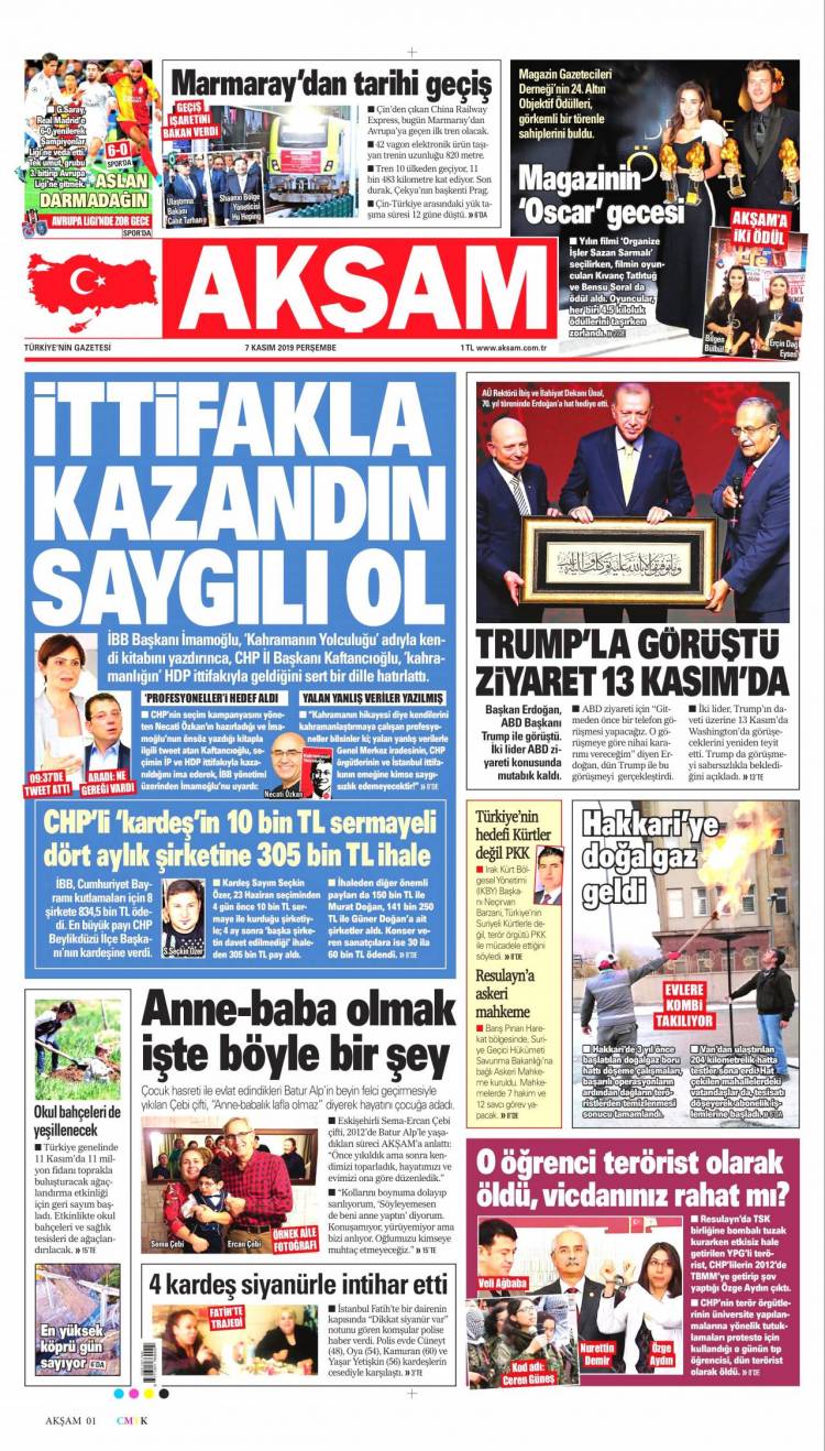 * Günün Ulusal Gazete Manşetleri – 07 11 2019Ulusal Gazetelerin 1. sayfaları Haber Merkezi Yayınlanma: 07.11.2019 - 11:50 Son güncellenme: 29.01.2025 - 00:36 Akşam