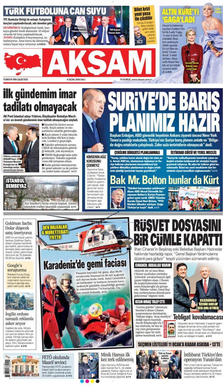 * Günün Ulusal Gazete Manşetleri – 08 01 2019Ulusal Gazetelerin 1. sayfaları Haber Merkezi Yayınlanma: 08.01.2019 - 11:50 Son güncellenme: 29.01.2025 - 05:06 Akşam